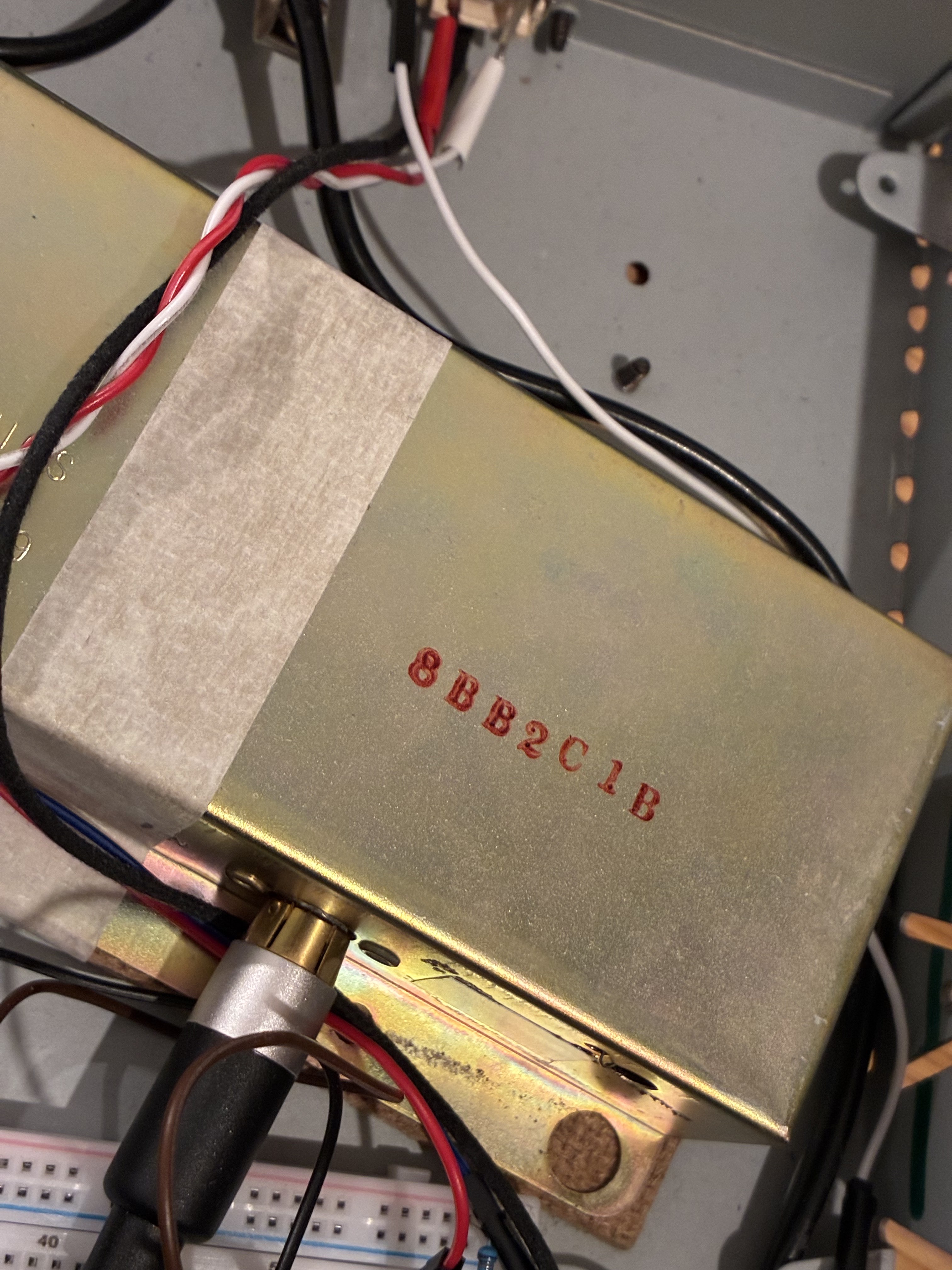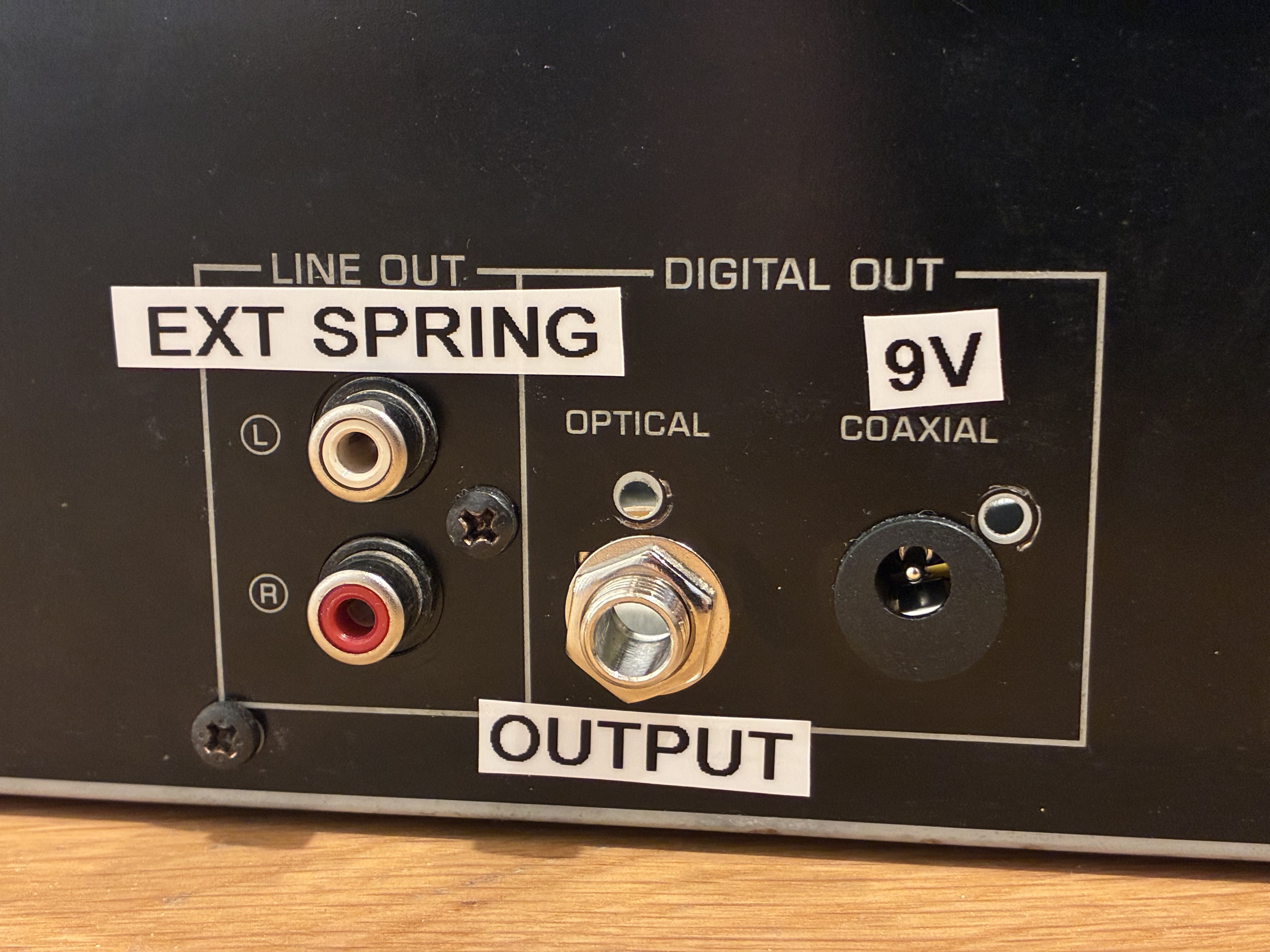Back of the spring reverb (external spring connector, output and 9V).