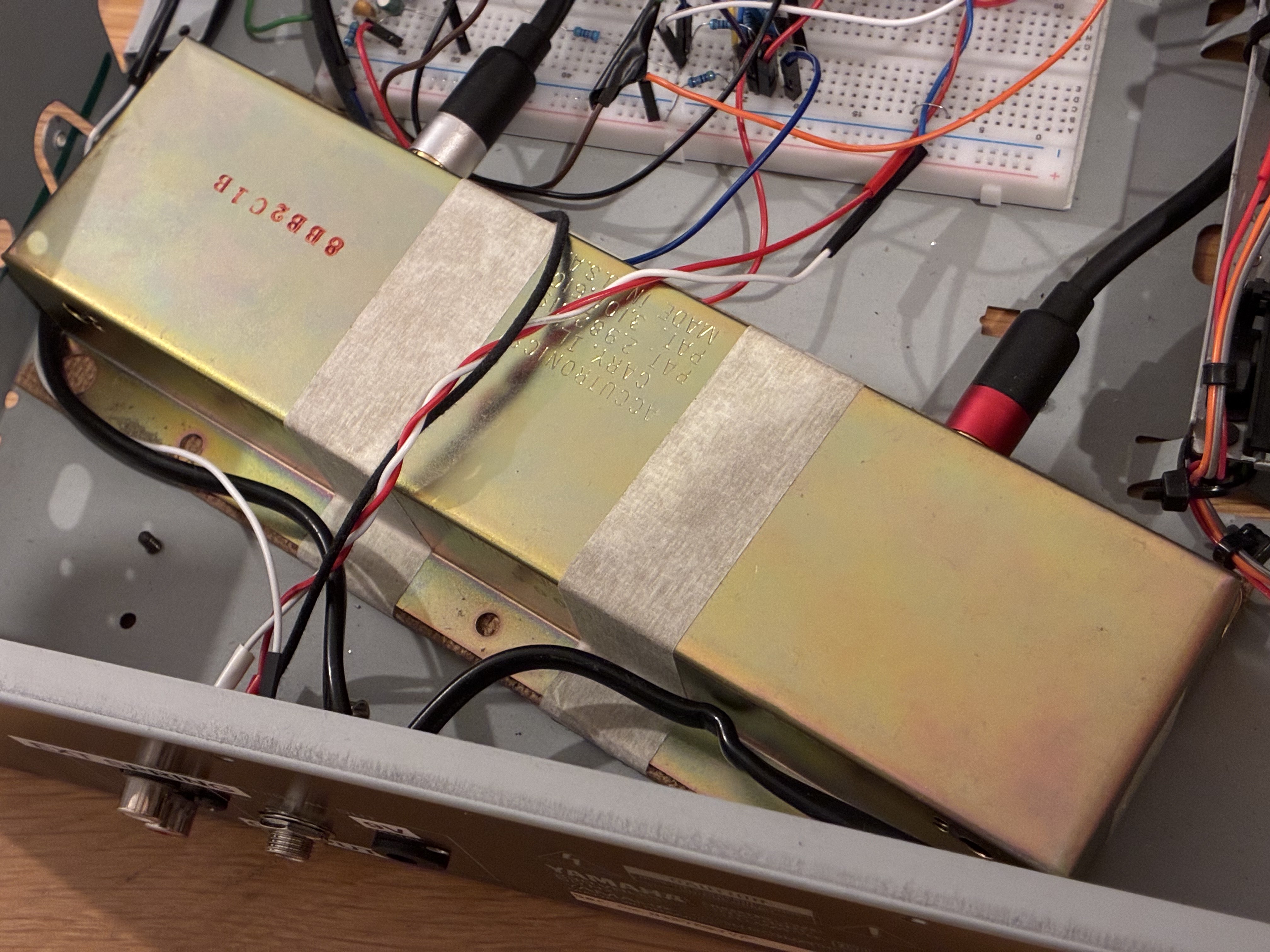 I'm using an Accutronics 8BB2C1B reverb tank inside my reverb unit and a bigger Accutronics 4BB3C1B external reverb tank.