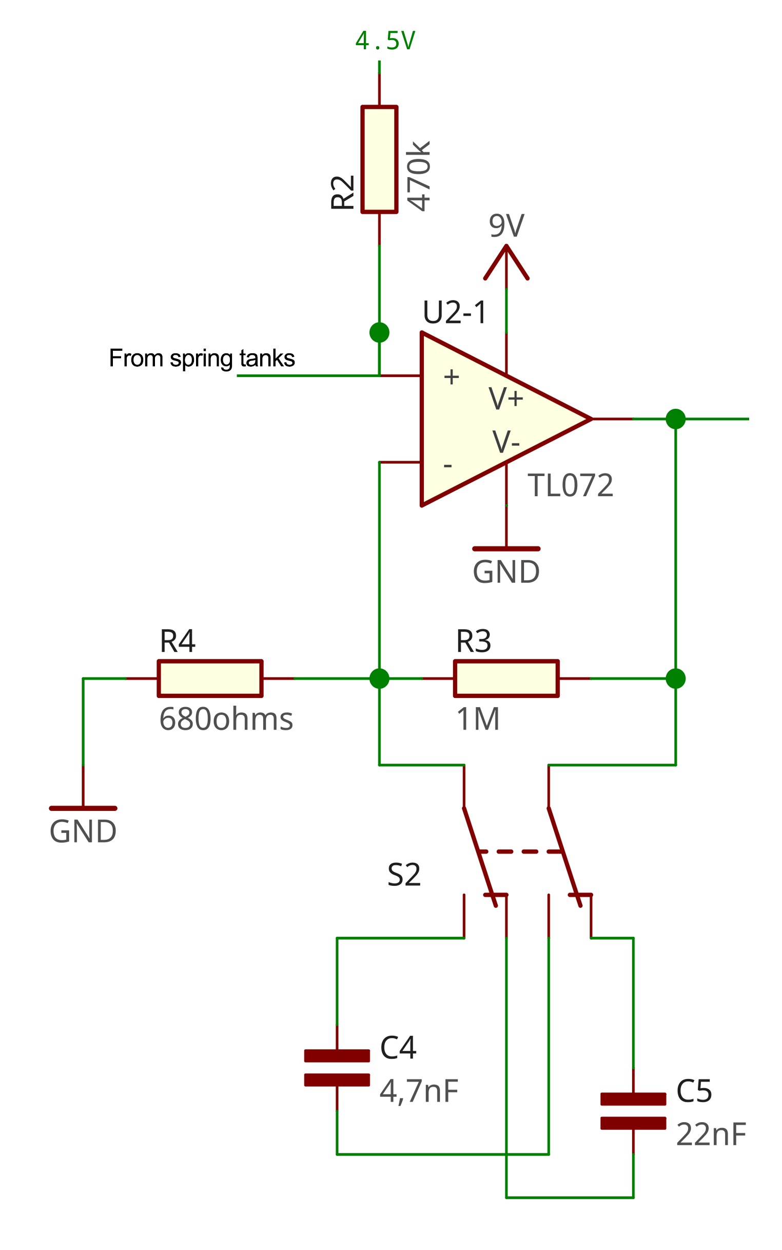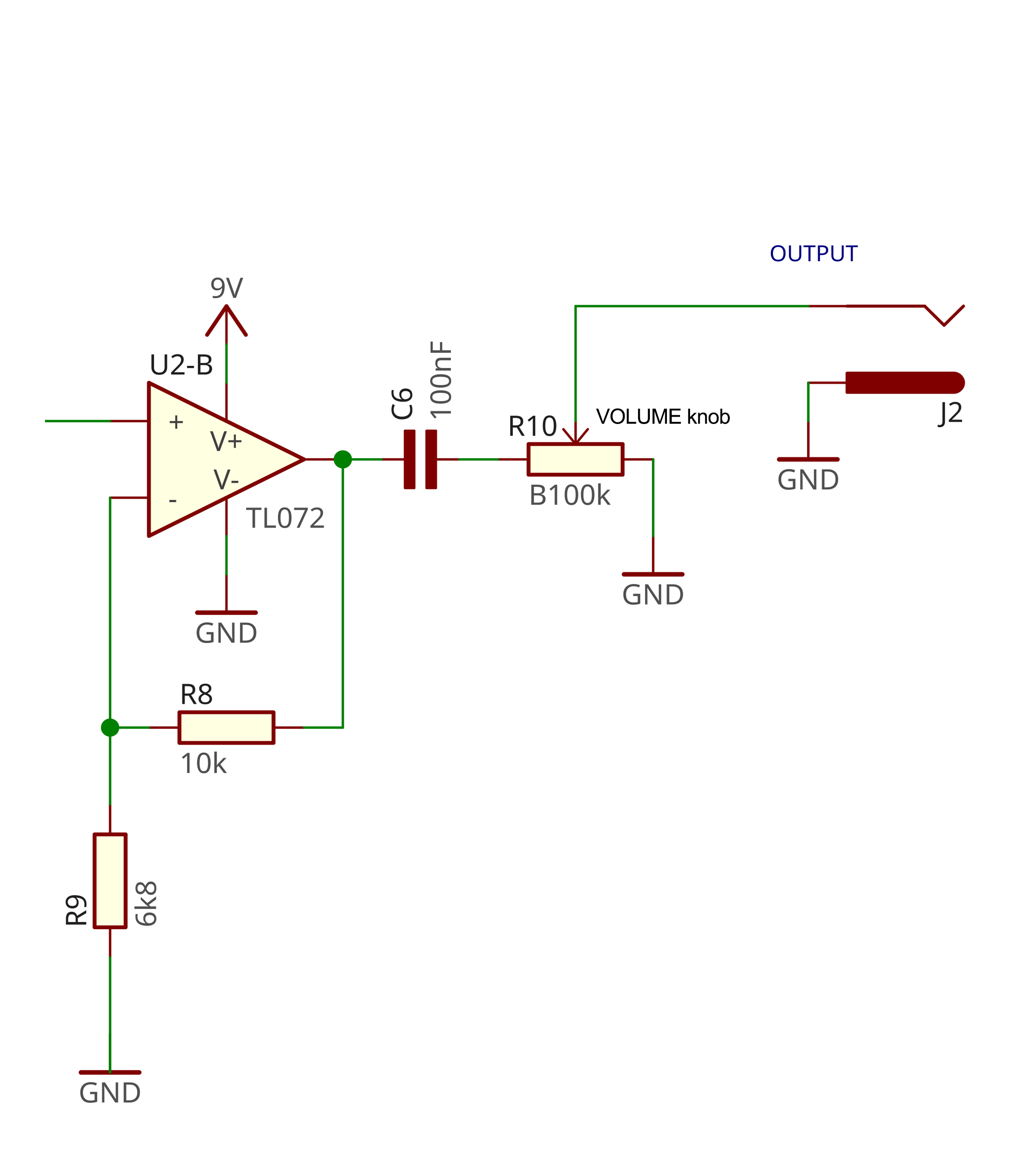 We're using 2 TL072 OpAmps. Those OpAmps are powered by a 9V current and connected to ground.